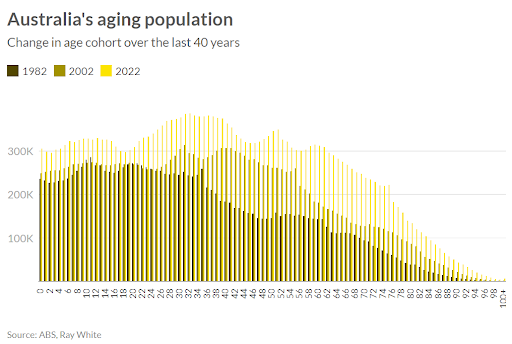 There is no doubt that Australia has an ageing population. Over the last 20 years we have seen a ballooning age cohort emerge in the over 60s group now representing approximately 6 million ‒ up from 3.3 million in 2002.